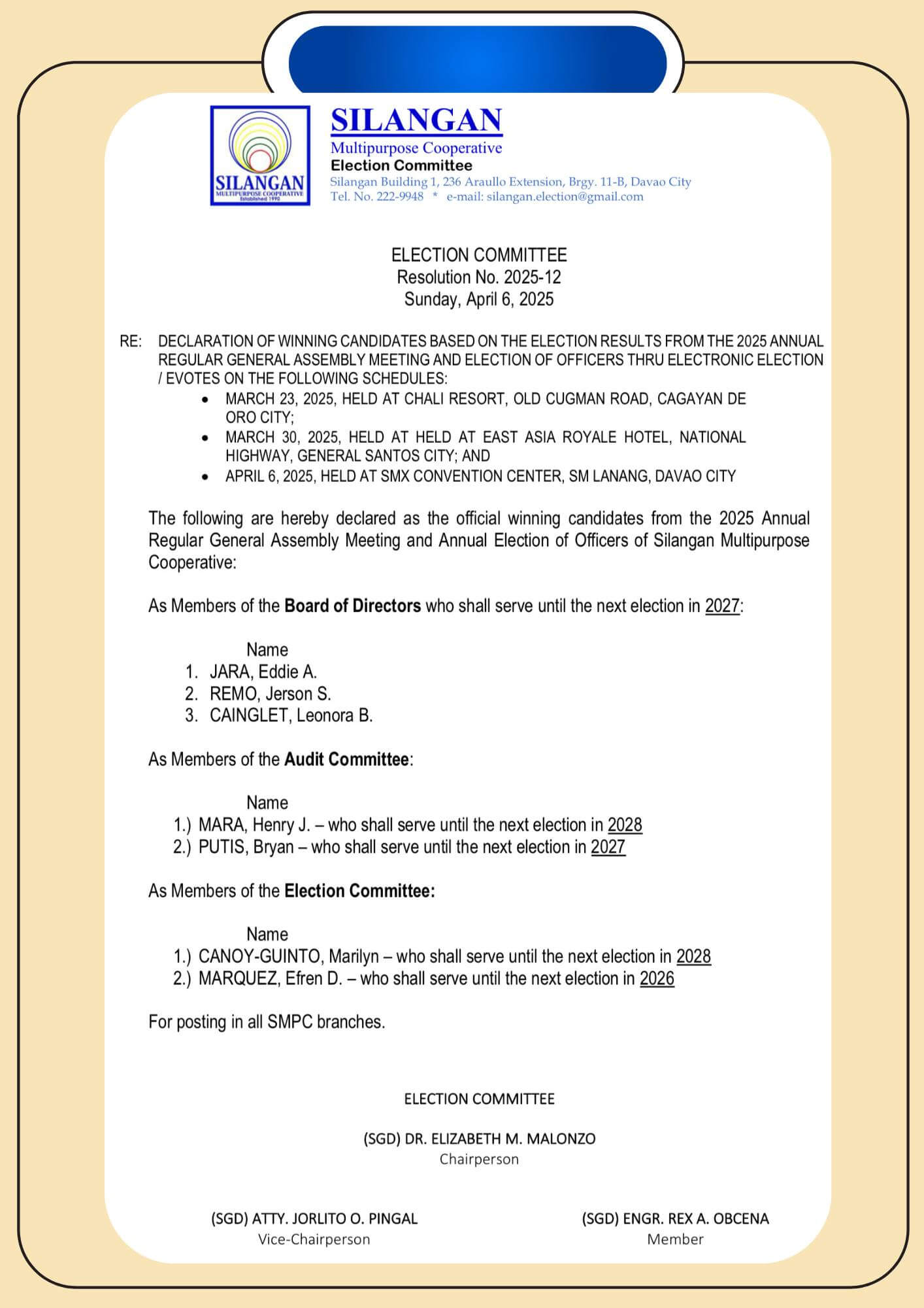 A homegrown cooperative in Davao City, SILANGAN has been a 3-year recipient of the "Most Outstanding Cooperative for Large Category" in the city, putting it in the Hall of Fame.